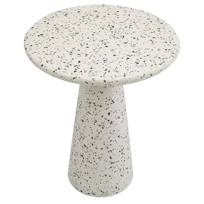Столик кофейный Bayn – не просто предмет мебели, а интересный акцент интерьера, который прекрасно комбинируется с различными стилевыми решениями и позволяет играть на контрастах.Столешница и основание столика выполнены из материала терраццо, характеризующегося высокой прочностью и устойчивостью к износу. В его состав входят мелкие кусочки натурального камня, скрепленные цементным раствором с добавлением пластификаторов. Поверхность терраццо гладкая, приятная на ощупь, прекрасно смотрится и не требует сложного ухода. Столешница диаметром 45 см позволяет размещать все необходимое – чашки кофе, десерты и прочее. При этом модель имеет компактные размеры, что способствует экономии полезного пространства.Материал: терраццо. Размеры: 45х45х55 см. Цвет: белый.Пыль и загрязнения можно удалять с поверхностей при помощи мягкого влажного материала. После очищения стол рекомендуется протереть сухой тканью.