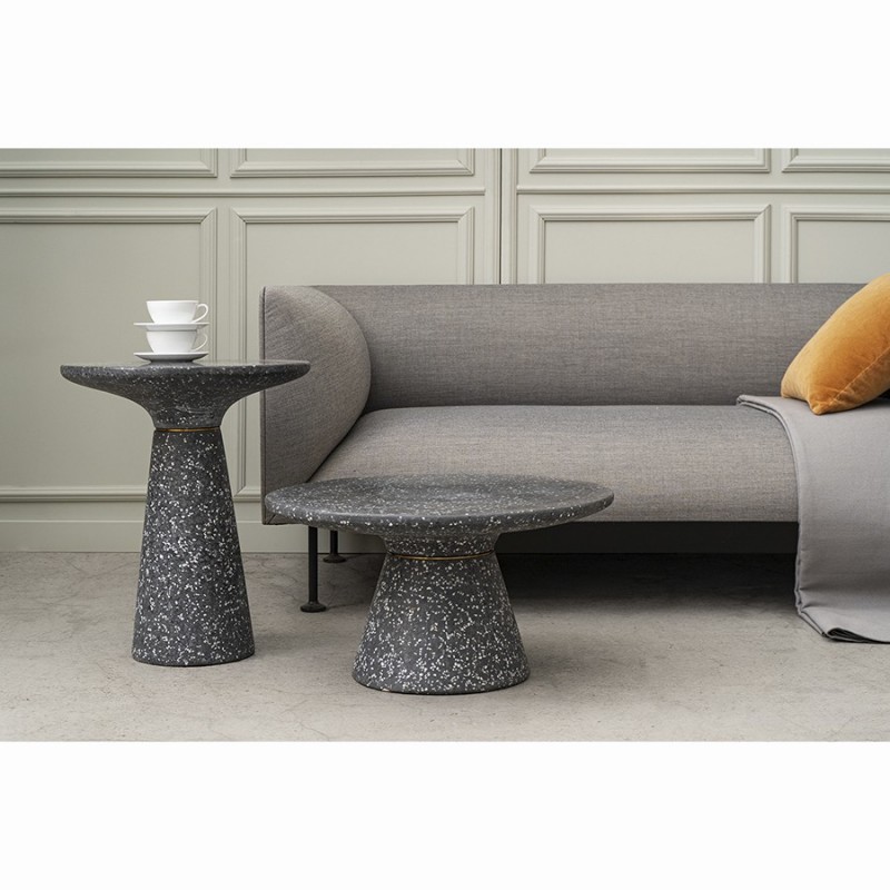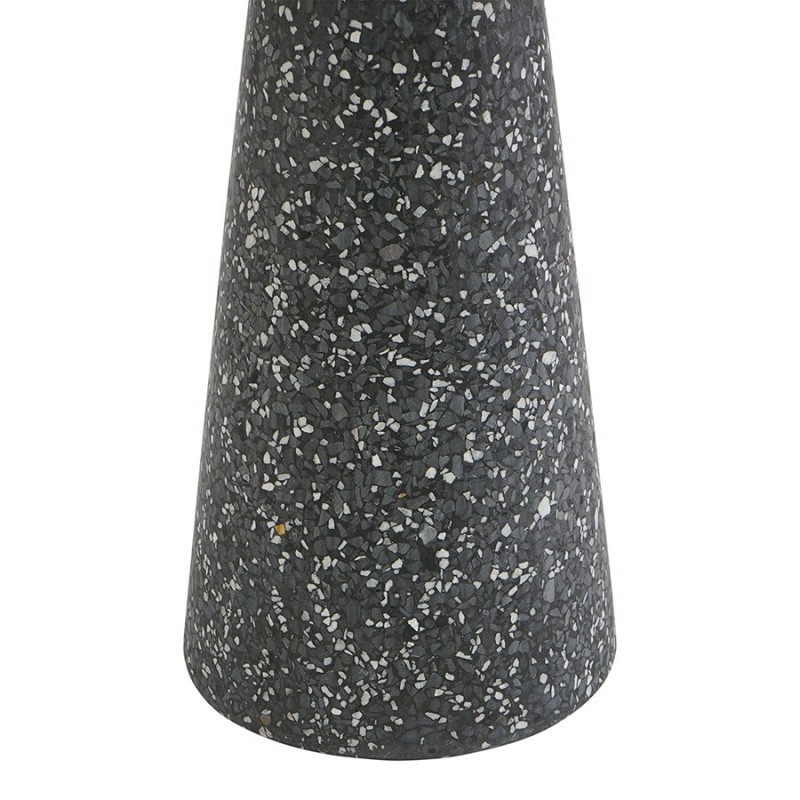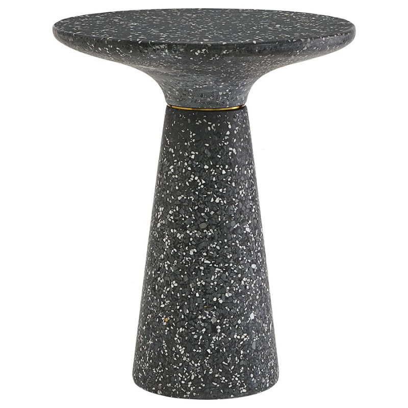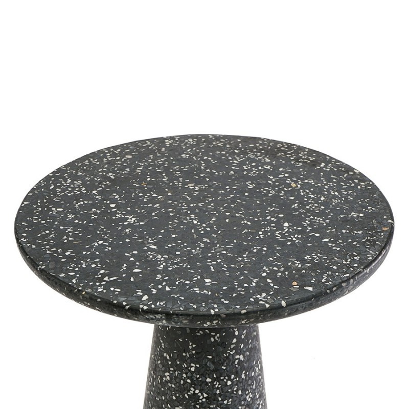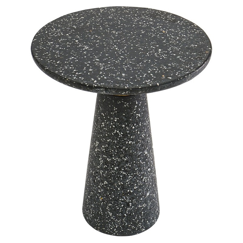 Столик кофейный Bayn – не просто предмет мебели, а интересный акцент интерьера, который прекрасно комбинируется с различными стилевыми решениями и позволяет играть на контрастах.Столешница и основание столика выполнены из материала терраццо, характеризующегося высокой прочностью и устойчивостью к износу. В его состав входят мелкие кусочки натурального камня, скрепленные цементным раствором с добавлением пластификаторов. Поверхность терраццо гладкая, приятная на ощупь, прекрасно смотрится и не требует сложного ухода. Столешница диаметром 45 см позволяет размещать все необходимое – чашки кофе, десерты и прочее. При этом модель имеет компактные размеры, что способствует экономии полезного пространства.Материал: терраццо. Размеры: 45х45х55 см. Цвет: черный.Пыль и загрязнения можно удалять с поверхностей при помощи мягкого влажного материала. После очищения стол рекомендуется протереть сухой тканью.