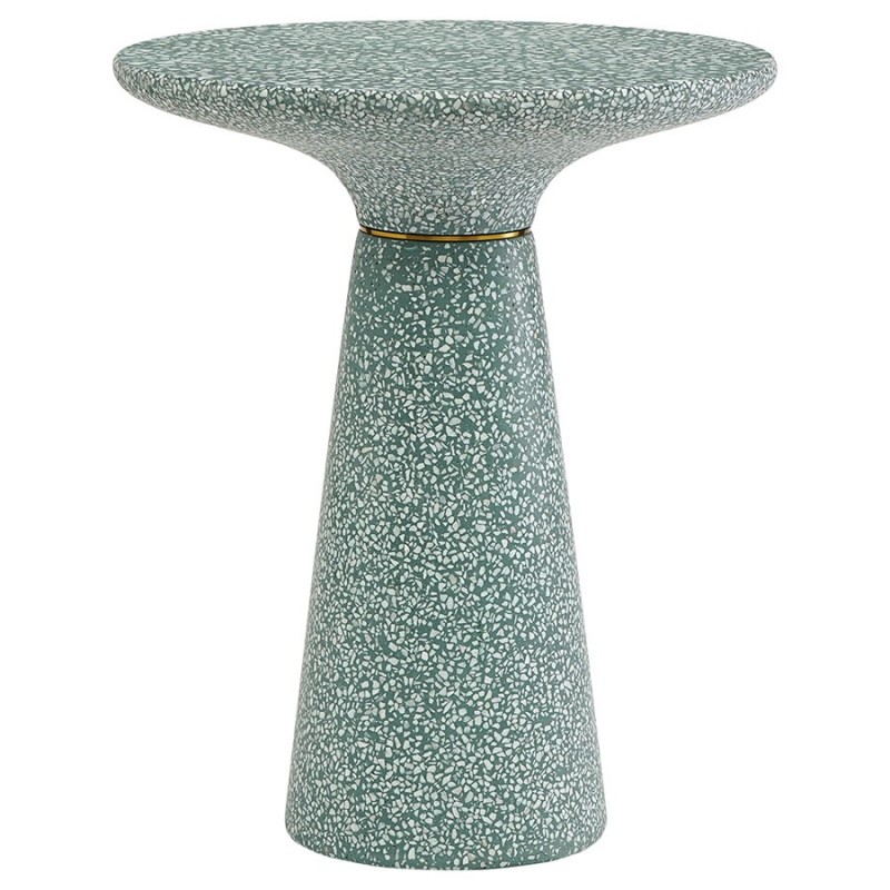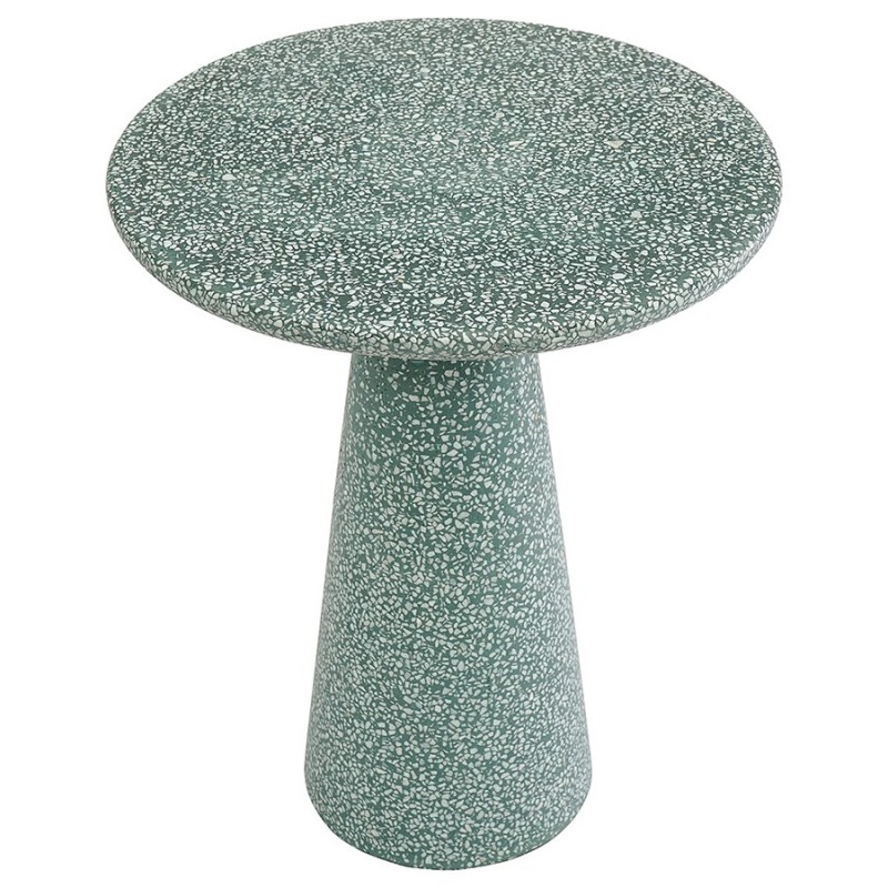 Столик кофейный Bayn – не просто предмет мебели, а интересный акцент интерьера, который прекрасно комбинируется с различными стилевыми решениями и позволяет играть на контрастах.Столешница и основание столика выполнены из материала терраццо, характеризующегося высокой прочностью и устойчивостью к износу. В его состав входят мелкие кусочки натурального камня, скрепленные цементным раствором с добавлением пластификаторов. Поверхность терраццо гладкая, приятная на ощупь, прекрасно смотрится и не требует сложного ухода. Столешница диаметром 45 см позволяет размещать все необходимое – чашки кофе, десерты и прочее. При этом модель имеет компактные размеры, что способствует экономии полезного пространства.Материал: терраццо. Размеры: 45х45х55 см. Цвет: зеленый.Пыль и загрязнения можно удалять с поверхностей при помощи мягкого влажного материала. После очищения стол рекомендуется протереть сухой тканью.