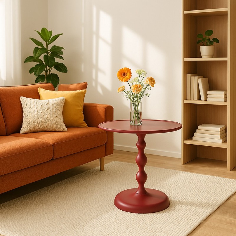 Столик кофейный Fluid – выбор тех, кто предпочитает современный дизайн и оригинальные решения. Выполненный в оттенке “жженый оранжевый”, он привлекает внимание и освежает любое пространство. Используйте его для размещения напитков, демонстрации декора, аксессуаров и как яркий акцент в любой из комнат.Особенности и преимущества:- Столешница и основание выполнены из алюминия, что делает стол легким, при этом прочным, надежным и долговечным. - Компактные размеры позволяют размещать его в любых помещениях – гостиной, спальне и даже на балконе. - Алюминиевую поверхность легко поддерживать в чистоте, что обеспечивает мебели практичность и удобство в использовании.! Обращаем ваше внимание, что этот предмет мебели изготовлен вручную и может быть не идеален. Небольшие неровности, потертости и различия в цвете – это не брак, а индивидуальная особенность товара, произведенного ручным способом.Материал: алюминий. Размеры: 59х53х36,7 см. Диаметр опоры: 32 см. Цвет: жженый оранжевый..Пыль и загрязнения с поверхностей можно удалять при помощи мягкого влажного материала. Сразу после очищения мебель рекомендуется протереть сухой тканью. Запрещается применение жестких щеток, абразивов и агрессивной бытовой химии на основе кислот.
