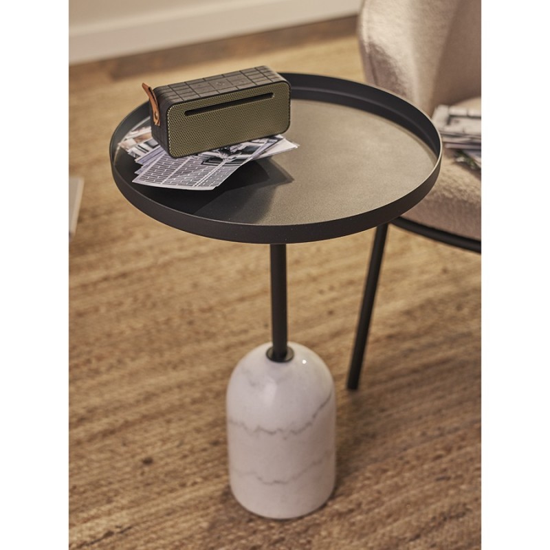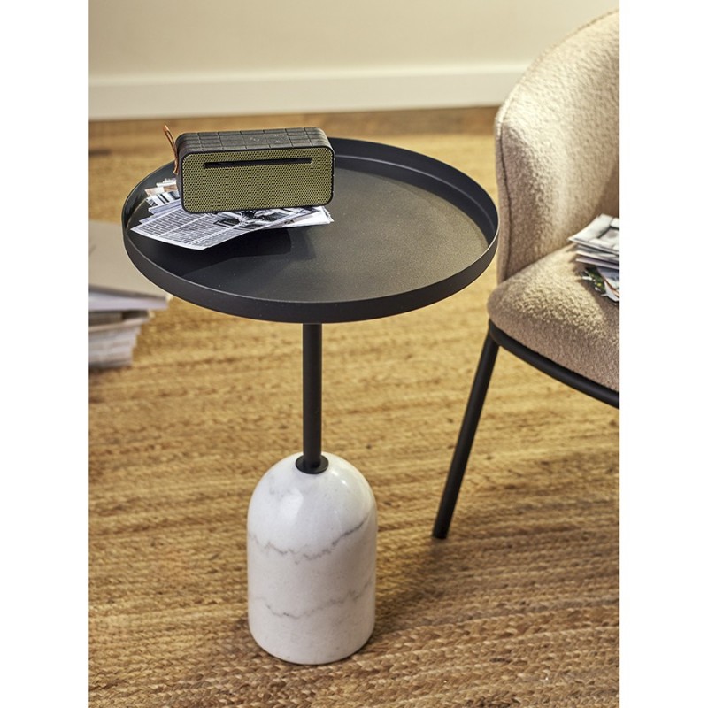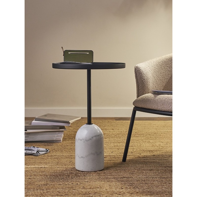 Кофейный столик Lars – прекрасный вариант для дома и кафе. Мебель имеет устойчивое основание из натурального мрамора, которое привносит в минималистичный дизайн нотки изысканности и благородства. Столешница и ножка выполнены из прочной стали, что обеспечивает конструкции практичность и долгий срок службы. Модель великолепно сочетается с различными стилевыми решениями: минимализм, лофт, фьюжн и др.Материалы: столешница и ножка – сталь, основание – мрамор. Максимальная нагрузка - 15 кг. Диаметр: 40 см. Высота: 59 см. Цвет: черный/белый.Пыль и загрязнения с поверхностей можно удалять мягкой влажной тряпкой или салфеткой. После чистки столешницу и основание рекомендуется вытирать сухой тканью. Запрещается использование жестких губок и агрессивной бытовой химии.
