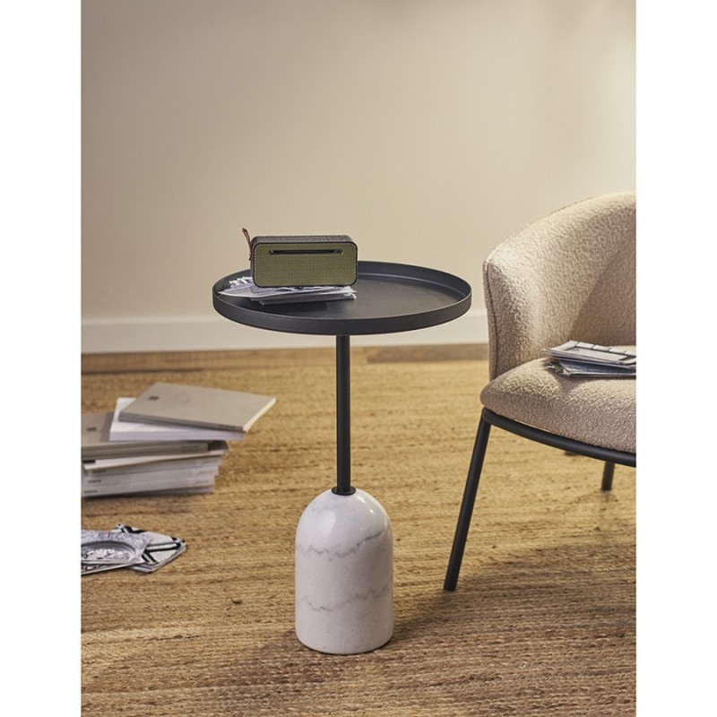 Кофейный столик Lars – прекрасный вариант для дома и кафе. Мебель имеет устойчивое основание из натурального мрамора, которое привносит в минималистичный дизайн нотки изысканности и благородства. Столешница и ножка выполнены из прочной стали, что обеспечивает конструкции практичность и долгий срок службы. Модель великолепно сочетается с различными стилевыми решениями: минимализм, лофт, фьюжн и др.Материалы: столешница и ножка – сталь, основание – мрамор. Максимальная нагрузка - 15 кг. Диаметр: 40 см. Высота: 59 см. Цвет: черный/белый.Пыль и загрязнения с поверхностей можно удалять мягкой влажной тряпкой или салфеткой. После чистки столешницу и основание рекомендуется вытирать сухой тканью. Запрещается использование жестких губок и агрессивной бытовой химии.