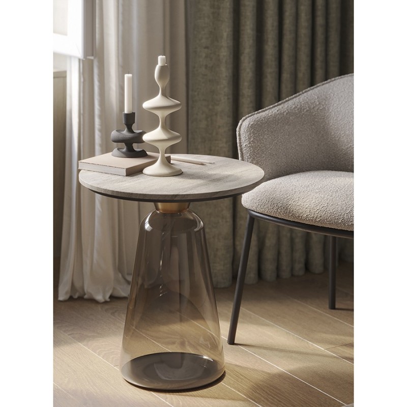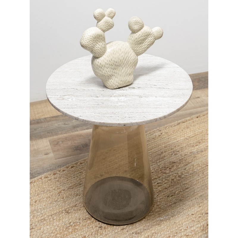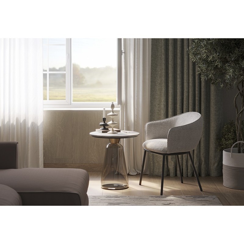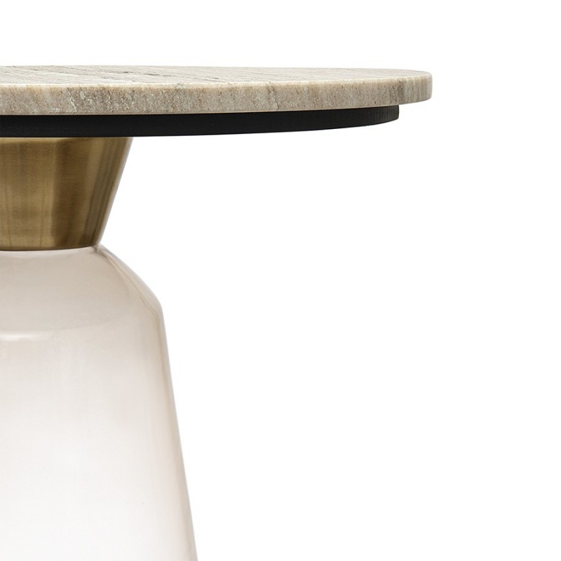Кофейный столик Odd обращает на себя внимание благодаря необычному дизайну. Изюминкой модели является прозрачное основание из ударопрочного стекла. Эффектная столешница с мраморным узором придает силуэту нотки изысканности и благородства. Мебель идеально подходит для обустройства интерьера в стиле неоклассика, минимализм, хай-тек и др.! Обращаем ваше внимание, что этот предмет мебели изготовлен вручную и может быть не идеален. Небольшие неровности, потертости и различия в цвете – это не брак, а индивидуальная особенность товара, произведенного ручным способом.Материалы: столешница – мрамор, основание – стекло. Диаметр: 50 см. Высота: 54 см. Цвет: мрамор/бежевый.Важно!Натуральный мрамор не обладает водоотталкивающим эффектом. Структура материала пористая, из-за чего он может впитывать жидкости и другие вещества. Чтобы защитить поверхность от пятен, ее можно обработать специальными защитными средствами (пропитки для мрамора).Как ухаживать за поверхностью из мрамора:1) Чтобы очистить поверхность из мрамора, протрите ее слегка влажной тканью, избегая длительного контакта с водой. Можно использовать мягкие чистящие жидкости, но не абразивные и не кислотные средства. 2) Образовавшиеся пятна можно очистить с помощью специальных средств для каменных поверхностей. 3) Защитная обработка: регулярно наносите защитный слой из пропитки для мрамора. Это позволит защитить поверхность и сделать ее более герметичной, устойчивой к появлению пятен. Можно использовать любую пропитку, которая подходит для натурального мрамора. 4) Использовать пропитку рекомендуется 1 раз в 6–12 месяцев, но не менее 1 раза в год, чтобы поддерживать ее защитный барьер от влаги, масел и грязи. Эта профилактическая мера помогает сохранить идеальный внешний вид камня и продлить срок его службы. 5) Постарайтесь избегать попадания масла и кислотных жидкостей на поверхность столешницы. Любую пролитую жидкость вытирайте насухо сразу же. 6) Во избежание появления новых пятен, используйте подставки под блюда, кружки, бокалы. 7) Не ставьте горячие и холодные емкости непосредственно на столешницу. 8) Не режьте на столешнице.
