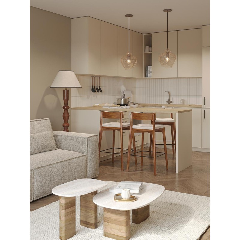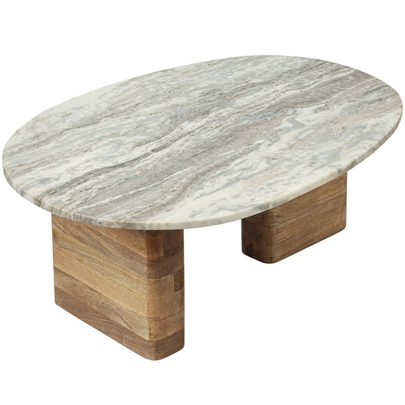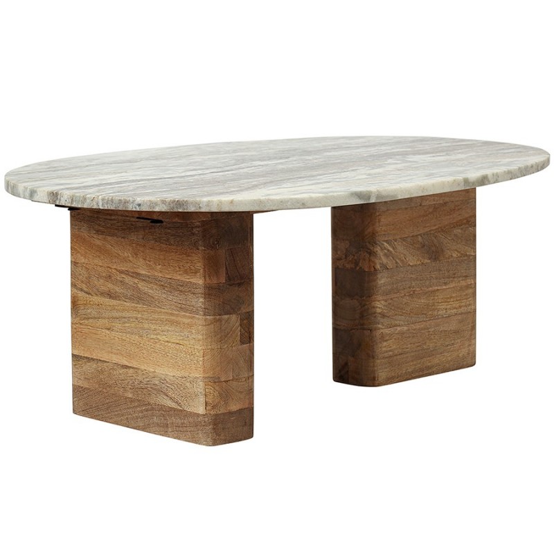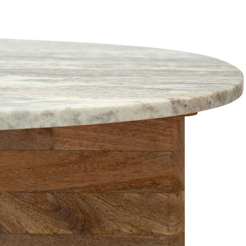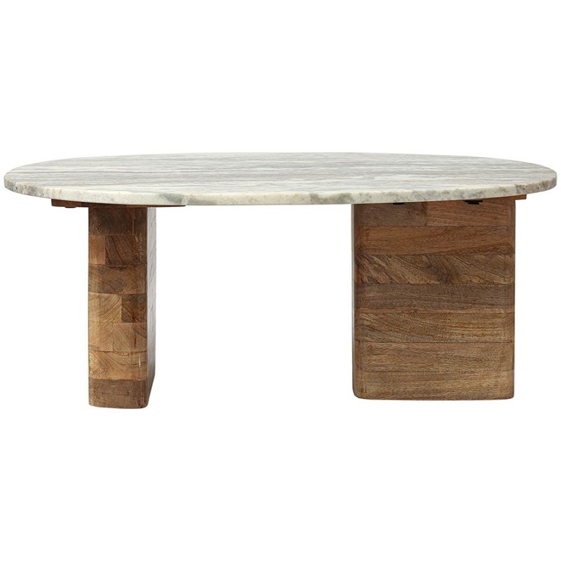 Столик кофейный Torhill от дизайнерского бренда Bergenson Bjorn – элегантное и функциональное дополнение к любому интерьеру. Столешница из мрамора и основание из мангового дерева создают прекрасный тандем, который привносит в интерьер ощущение гармонии и единения с природой.Особенности и преимущества:- Материалы выдерживают испытание временем, сохраняя привлекательный вид и первоначальные характеристики. - Столешница из мрамора делает модель интересной, объединяя в себе природную красоту, практичность и долговечность. - Основание из мангового дерева делает мебель устойчивой и надежной, а ее дизайн – уникальным, с налетом экзотики. - Универсальность мрамора и естественный оттенок древесины позволяют вписать столик в интерьер, оформленный в любой цветовой гамме.! Обращаем ваше внимание, что этот предмет мебели изготовлен вручную и может быть не идеален. Небольшие неровности, потертости и различия в цвете – это не брак, а индивидуальная особенность товара, произведенного ручным способом.Материал: манговое дерево, мрамор. Размеры: 75х52х30 см. Максимальная нагрузка: 20 кг. Цвет: бежевый/мрамор.Важно!Натуральный мрамор не обладает водоотталкивающим эффектом. Структура материала пористая, из-за чего он может впитывать жидкости и другие вещества. Чтобы защитить поверхность от пятен, ее можно обработать специальными защитными средствами (пропитки для мрамора).Как ухаживать за поверхностью из мрамора:1) Чтобы очистить поверхность из мрамора, протрите ее слегка влажной тканью, избегая длительного контакта с водой. Можно использовать мягкие чистящие жидкости, но не абразивные и не кислотные средства. 2) Образовавшиеся пятна можно очистить с помощью специальных средств для каменных поверхностей. 3) Защитная обработка: регулярно наносите защитный слой из пропитки для мрамора. Это позволит защитить поверхность и сделать ее более герметичной, устойчивой к появлению пятен. Можно использовать любую пропитку, которая подходит для натурального мрамора. 4) Использовать пропитку рекомендуется 1 раз в 6–12 месяцев, но не менее 1 раза в год, чтобы поддерживать ее защитный барьер от влаги, масел и грязи. Эта профилактическая мера помогает сохранить идеальный внешний вид камня и продлить срок его службы. 5) Постарайтесь избегать попадания масла и кислотных жидкостей на поверхность столешницы. Любую пролитую жидкость вытирайте насухо сразу же. 6) Во избежание появления новых пятен, используйте подставки под блюда, кружки, бокалы. 7) Не ставьте горячие и холодные емкости непосредственно на столешницу. 8) Не режьте на столешнице.