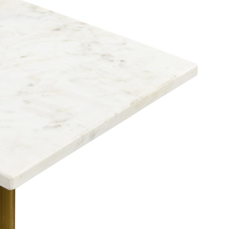 Столик приставной Svein обращает на себя внимание благодаря мраморной столешнице и необычной форме. Этот небольшой, но функциональный предмет мебели великолепно дополнит интерьер гостиной, спальни, рабочего кабинета с современным или классическим дизайном.Особенности и преимущества:- Каркас из высокопрочного железа обеспечивает конструкции надежность, устойчивость и долгий срок службы. - Столик очень компактный, благодаря чему идеально подходит для обустройства малогабаритных помещений. - Столешница из мрамора смотрится презентабельно, легко очищается и гарантирует долговечную эксплуатацию. - Дизайн актуален для большинства стилевых решений, включая сканди, фьюжн, арт-деко, неоклассика и другие.! Обращаем ваше внимание, что этот предмет мебели изготовлен вручную и может быть не идеален. Небольшие неровности, потертости и различия в цвете – это не брак, а индивидуальная особенность товара, произведенного ручным способом.Материалы: мрамор, железо. Размеры: 30х30 см. Цвет: мрамор/золотой.Важно!Натуральный мрамор не обладает водоотталкивающим эффектом. Структура материала пористая, из-за чего он может впитывать жидкости и другие вещества. Чтобы защитить поверхность от пятен, ее можно обработать специальными защитными средствами (пропитки для мрамора).Как ухаживать за поверхностью из мрамора:1) Чтобы очистить поверхность из мрамора, протрите ее слегка влажной тканью, избегая длительного контакта с водой. Можно использовать мягкие чистящие жидкости, но не абразивные и не кислотные средства. 2) Образовавшиеся пятна можно очистить с помощью специальных средств для каменных поверхностей. 3) Защитная обработка: регулярно наносите защитный слой из пропитки для мрамора. Это позволит защитить поверхность и сделать ее более герметичной, устойчивой к появлению пятен. Можно использовать любую пропитку, которая подходит для натурального мрамора. 4) Использовать пропитку рекомендуется 1 раз в 6–12 месяцев, но не менее 1 раза в год, чтобы поддерживать ее защитный барьер от влаги, масел и грязи. Эта профилактическая мера помогает сохранить идеальный внешний вид камня и продлить срок его службы. 5) Постарайтесь избегать попадания масла и кислотных жидкостей на поверхность столешницы. Любую пролитую жидкость вытирайте насухо сразу же. 6) Во избежание появления новых пятен, используйте подставки под блюда, кружки, бокалы. 7) Не ставьте горячие и холодные емкости непосредственно на столешницу. 8) Не режьте на столешнице.