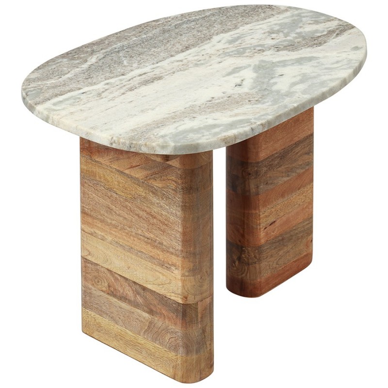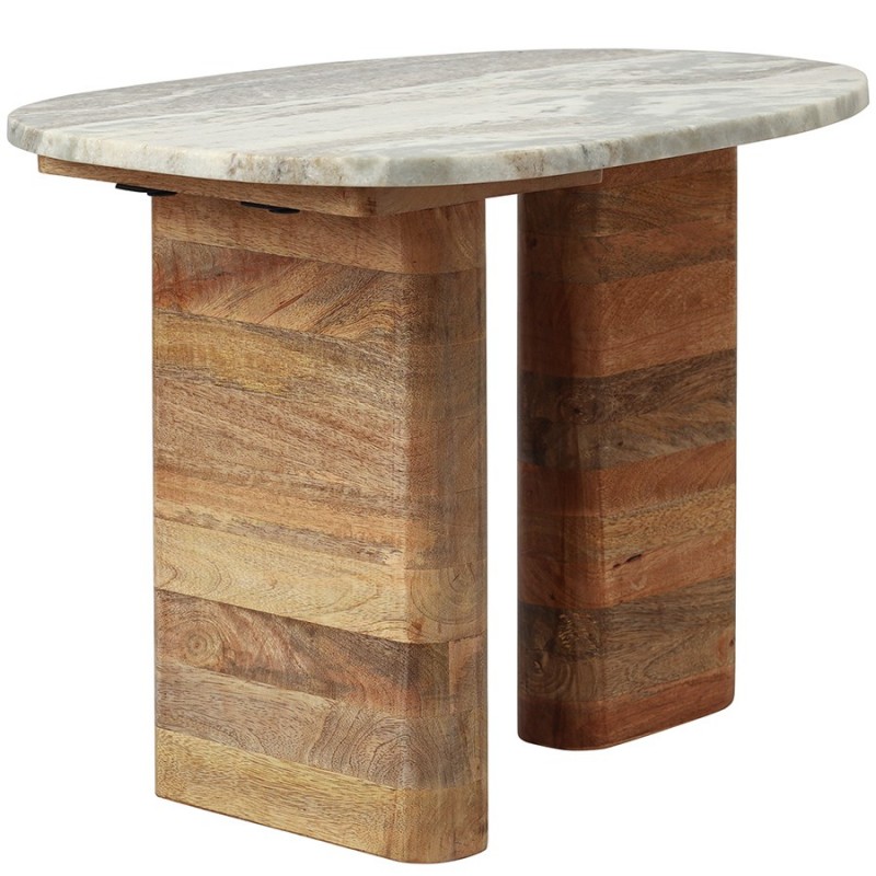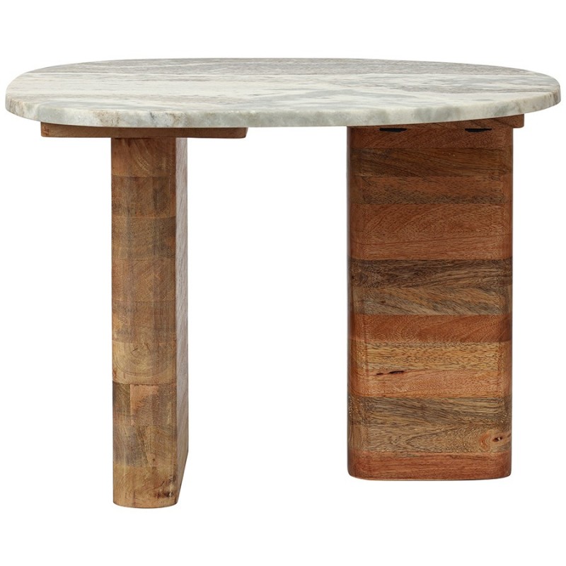 Столик приставной Torhill от дизайнерского бренда Bergenson Bjorn – элегантное и функциональное дополнение к любому интерьеру. Столешница из мрамора и основание из мангового дерева создают прекрасный тандем, который привносит в интерьер ощущение гармонии и единения с природой.Особенности и преимущества:- Материалы выдерживают испытание временем, сохраняя привлекательный вид и первоначальные характеристики. - Столешница из мрамора делает модель интересной, объединяя в себе природную красоту, практичность и долговечность. - Основание из мангового дерева делает мебель устойчивой и надежной, а ее дизайн – уникальным, с налетом экзотики. - Универсальность мрамора и естественный оттенок древесины позволяют вписать столик в интерьер, оформленный в любой цветовой гамме.! Обращаем ваше внимание, что этот предмет мебели изготовлен вручную и может быть не идеален. Небольшие неровности, потертости и различия в цвете – это не брак, а индивидуальная особенность товара, произведенного ручным способом.Материал: манговое дерево, мрамор. Размеры: 50x35x38 см. Максимальная нагрузка: 20 кг. Цвет: бежевый/мрамор.Важно!Натуральный мрамор не обладает водоотталкивающим эффектом. Структура материала пористая, из-за чего он может впитывать жидкости и другие вещества. Чтобы защитить поверхность от пятен, ее можно обработать специальными защитными средствами (пропитки для мрамора).Как ухаживать за поверхностью из мрамора:1) Чтобы очистить поверхность из мрамора, протрите ее слегка влажной тканью, избегая длительного контакта с водой. Можно использовать мягкие чистящие жидкости, но не абразивные и не кислотные средства. 2) Образовавшиеся пятна можно очистить с помощью специальных средств для каменных поверхностей. 3) Защитная обработка: регулярно наносите защитный слой из пропитки для мрамора. Это позволит защитить поверхность и сделать ее более герметичной, устойчивой к появлению пятен. Можно использовать любую пропитку, которая подходит для натурального мрамора. 4) Использовать пропитку рекомендуется 1 раз в 6–12 месяцев, но не менее 1 раза в год, чтобы поддерживать ее защитный барьер от влаги, масел и грязи. Эта профилактическая мера помогает сохранить идеальный внешний вид камня и продлить срок его службы. 5) Постарайтесь избегать попадания масла и кислотных жидкостей на поверхность столешницы. Любую пролитую жидкость вытирайте насухо сразу же. 6) Во избежание появления новых пятен, используйте подставки под блюда, кружки, бокалы. 7) Не ставьте горячие и холодные емкости непосредственно на столешницу. 8) Не режьте на столешнице.