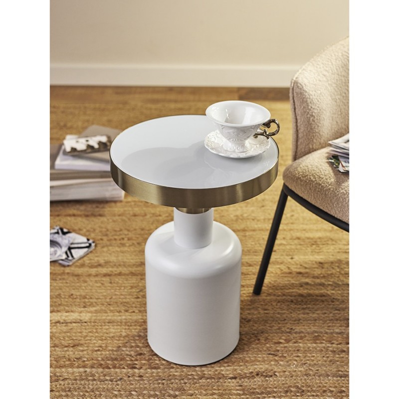 Столик журнальный Froud – стильный элемент интерьера, который поможет акцентировать внимание на деталях. Лаконичный дизайн и актуальное цветовое решение сделают этот предмет мебели прекрасным дополнением любого пространства в современном стиле.Сочетание основания из нержавеющей стали и столешницы из стекла обеспечивает модели необычный вид и высокие эксплуатационные характеристики – устойчивость к износу, простой уход и защиту от коррозии. Круглый столик небольших размеров будет отлично смотреться как в центре комнаты, так и у стены. На нем можно удобно размещать любые подручные предметы: книги, журналы, пульты от мультимедийных устройств и различный декор.Материалы: нержавеющая сталь, стекло. Размеры: 35х35х51 см. Цвет: белый.Пыль и загрязнения можно удалять с поверхностей при помощи мягкого влажного материала. После очищения стол рекомендуется протереть сухой тканью. Запрещается использование абразивов и агрессивной бытовой химии.