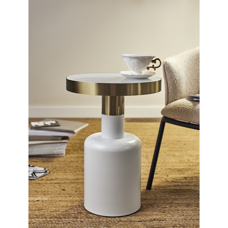 Столик журнальный Froud – стильный элемент интерьера, который поможет акцентировать внимание на деталях. Лаконичный дизайн и актуальное цветовое решение сделают этот предмет мебели прекрасным дополнением любого пространства в современном стиле.Сочетание основания из нержавеющей стали и столешницы из стекла обеспечивает модели необычный вид и высокие эксплуатационные характеристики – устойчивость к износу, простой уход и защиту от коррозии. Круглый столик небольших размеров будет отлично смотреться как в центре комнаты, так и у стены. На нем можно удобно размещать любые подручные предметы: книги, журналы, пульты от мультимедийных устройств и различный декор.Материалы: нержавеющая сталь, стекло. Размеры: 35х35х51 см. Цвет: белый.Пыль и загрязнения можно удалять с поверхностей при помощи мягкого влажного материала. После очищения стол рекомендуется протереть сухой тканью. Запрещается использование абразивов и агрессивной бытовой химии.