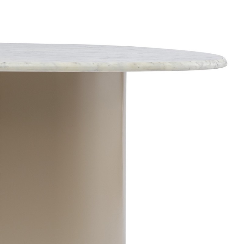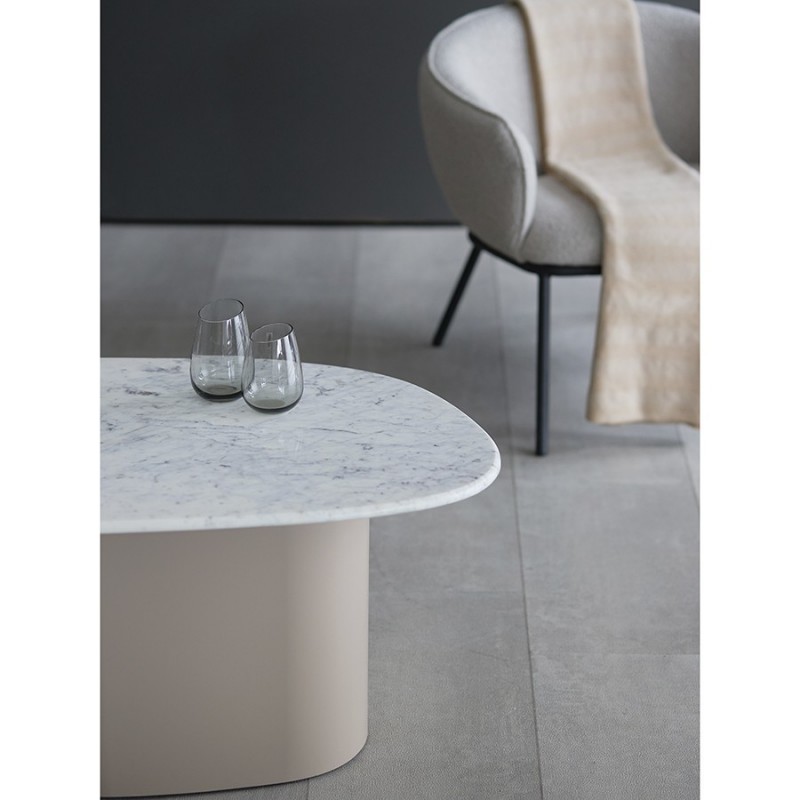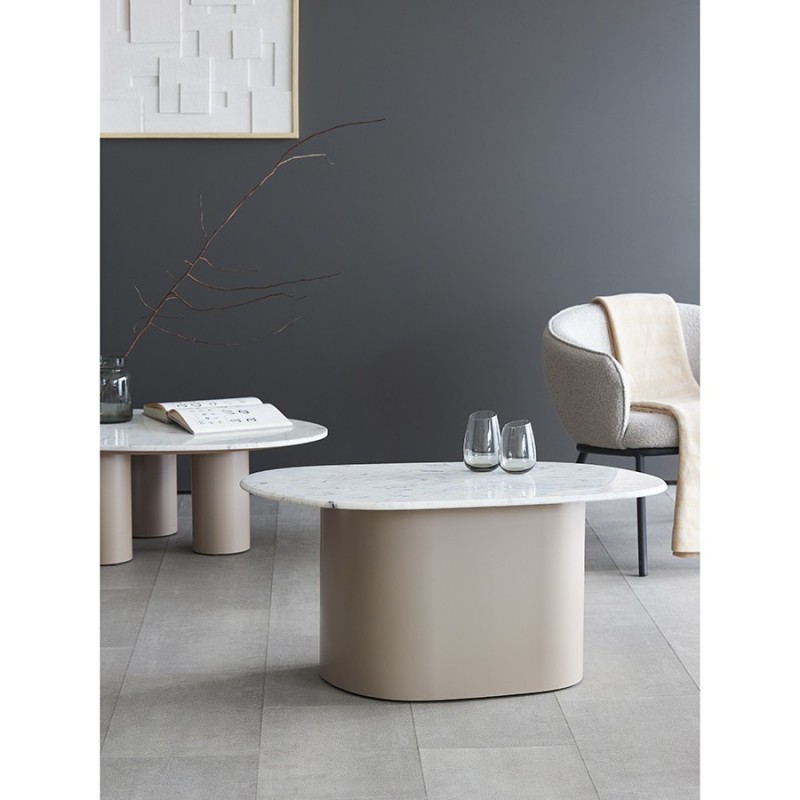Столик журнальный Mojo от бренда Bergenson Bjorn – прекрасное сочетание эстетики и функциональности. Основание из железа придает мебели современный вид, а столешница из мрамора добавляет дизайну элегантность. Модель идеально подходит для размещения в центре гостиной или уютной зоны отдыха. Столик придаст интерьеру индивидуальность и шарм, станет удобным местом для хранения книг, журналов и демонстрации декора.Особенности и преимущества:- Основание изготовлено из железа, что обеспечивает конструкции надежность и долговечность. - Столешница из мрамора придает столику изысканный вид, обладает прочностью, не требует сложного ухода. - Дизайн великолепно гармонирует как с современными, так и классическими интерьерными решениями.! Обращаем ваше внимание, что этот предмет мебели изготовлен вручную и может быть не идеален. Небольшие неровности, потертости и различия в цвете – это не брак, а индивидуальная особенность товара, произведенного ручным способом.Материалы: железо, мрамор. Размеры: 62х90х44 см. Максимальная нагрузка: 20 кг. Цвет: бежевый.Важно!Натуральный мрамор не обладает водоотталкивающим эффектом. Структура материала пористая, из-за чего он может впитывать жидкости и другие вещества. Чтобы защитить поверхность от пятен, ее можно обработать специальными защитными средствами (пропитки для мрамора).Как ухаживать за поверхностью из мрамора:1) Чтобы очистить поверхность из мрамора, протрите ее слегка влажной тканью, избегая длительного контакта с водой. Можно использовать мягкие чистящие жидкости, но не абразивные и не кислотные средства. 2) Образовавшиеся пятна можно очистить с помощью специальных средств для каменных поверхностей. 3) Защитная обработка: регулярно наносите защитный слой из пропитки для мрамора. Это позволит защитить поверхность и сделать ее более герметичной, устойчивой к появлению пятен. Можно использовать любую пропитку, которая подходит для натурального мрамора. 4) Использовать пропитку рекомендуется 1 раз в 6–12 месяцев, но не менее 1 раза в год, чтобы поддерживать ее защитный барьер от влаги, масел и грязи. Эта профилактическая мера помогает сохранить идеальный внешний вид камня и продлить срок его службы. 5) Постарайтесь избегать попадания масла и кислотных жидкостей на поверхность столешницы. Любую пролитую жидкость вытирайте насухо сразу же. 6) Во избежание появления новых пятен, используйте подставки под блюда, кружки, бокалы. 7) Не ставьте горячие и холодные емкости непосредственно на столешницу. 8) Не режьте на столешнице.